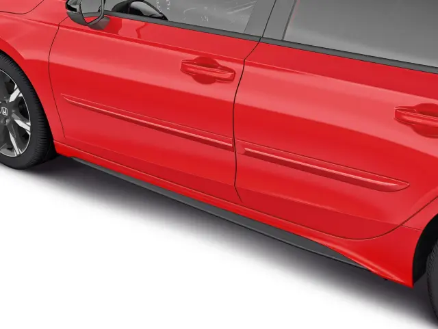 Body Side Molding accentuates the styling of the Civic Hatchback, but theres more to it than just good looks. Its ideally positioned where the side panel extends out the most, in order to help protect against door dings and scratches.